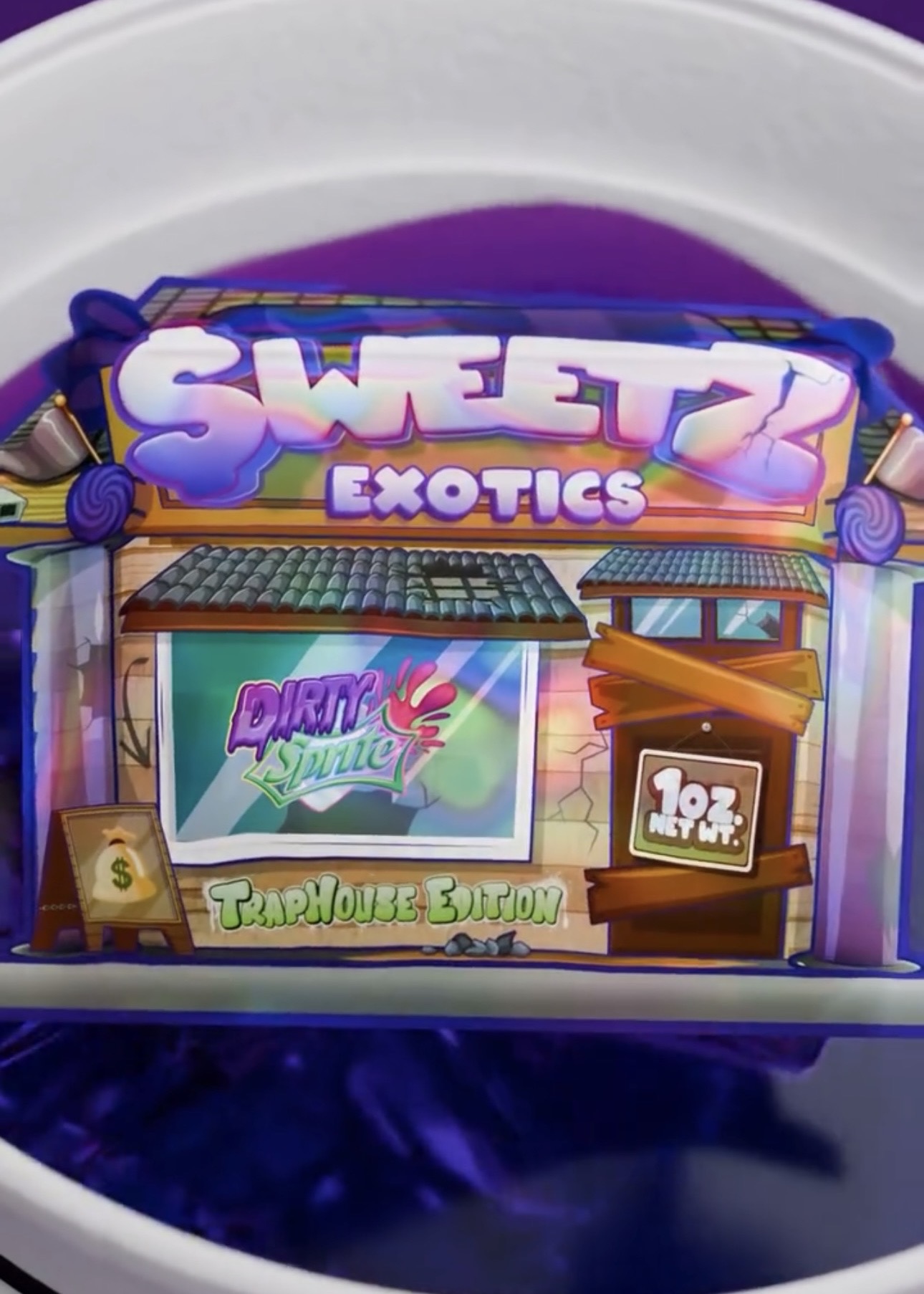 True to the Sweetz Exotics brand, the Dirty Sprite Traphouse Edition arrives in bold, collectible packaging that embodies its cultural edge. Expect vibrant, eye-catching visuals that tie into the “Traphouse” theme while also ensuring compliance with all cannabis regulations.